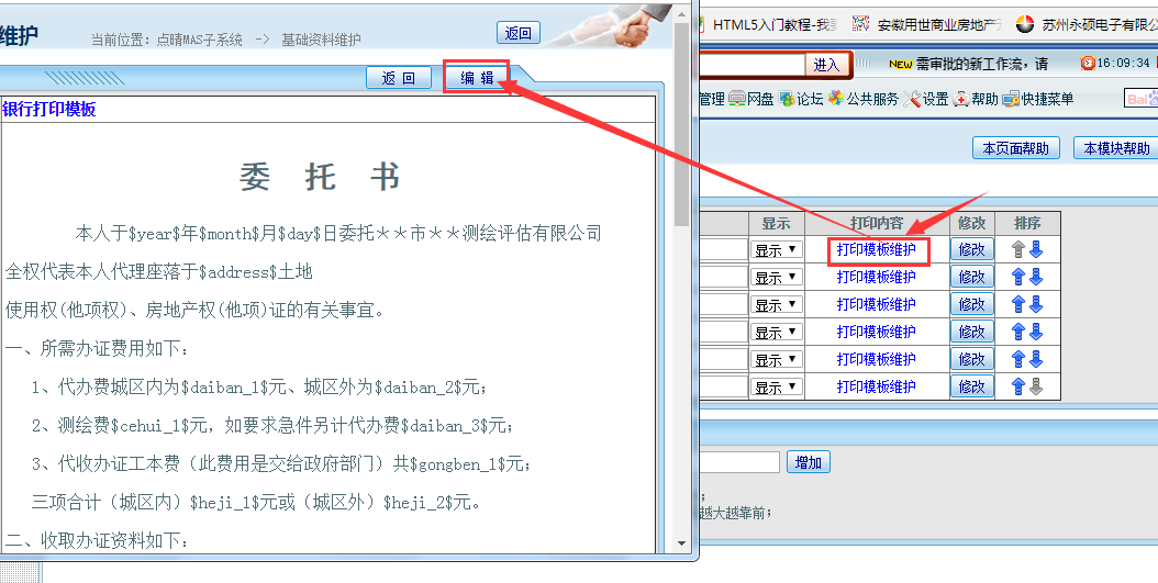 选择对应的模板,点击“打印模板维护”字样进行维护,