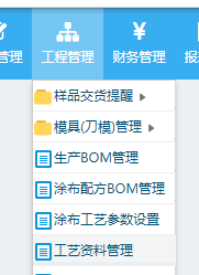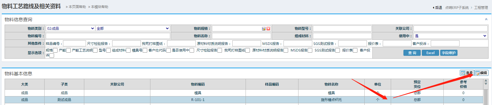 操作步骤:工程管理-工艺资料管理 ![]() 进入界面后,选择对应的产品,点击编辑按钮,如下图所示: