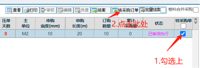 2. 如果没有设定审核的话,在”采购管理-->申购单管理-->申购单管理”