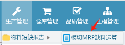 操作步骤:生产管理-模切MRP缺料运算,如下图: