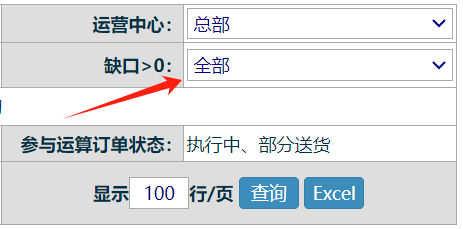 此时需要选择缺口为全部再查询,以该物料全部的缺口作为分析,如下图: