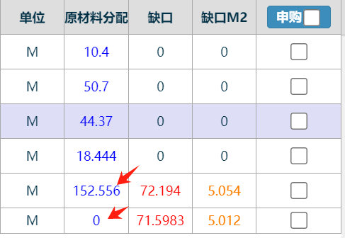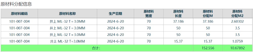 查询后,若需要看详情,可以点击“原材料分配”栏位的蓝色字样查询详细分配数据,如下图:
