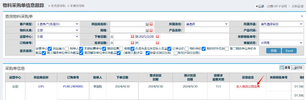 点晴模切ERP采购单信息反馈如何操作