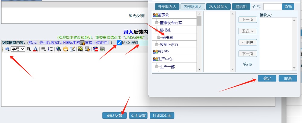 录入反馈信息,选择相关人员,点击反馈完成操作,如下图所示: