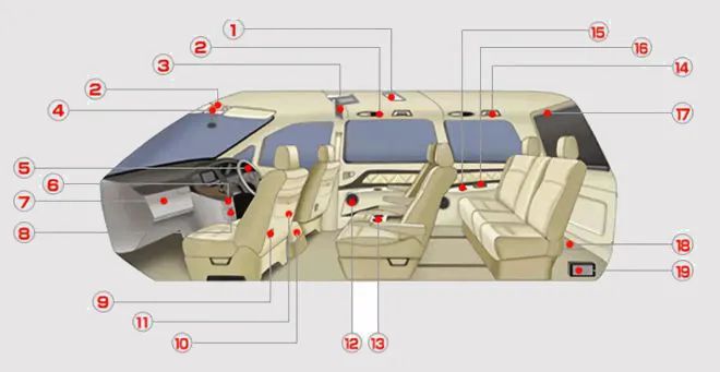 ① 室内灯:防尘、吸收震动、提高遮光性