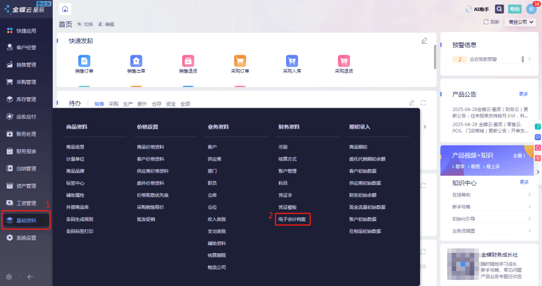 [点晴模切ERP]金蝶云·星辰电子档案使用方法