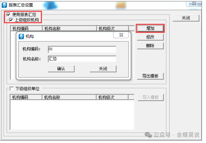 - 上级机构:汇总单位(如集团总部),可新增/删除下级机构。
