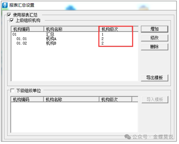- 下级机构:被汇总单位(如分支机构A、B)。
