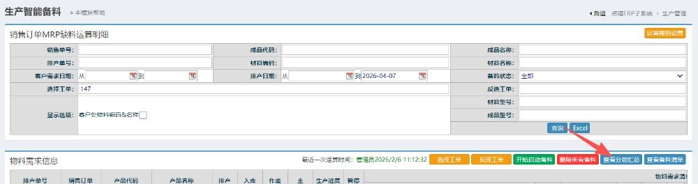 操作完成后,点击“查看分切汇总”按钮,进入到分切计划菜单