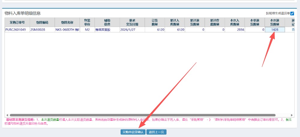最后到采购退货单管理界面打印退货单,待供应商来取退货时作为签字交接
