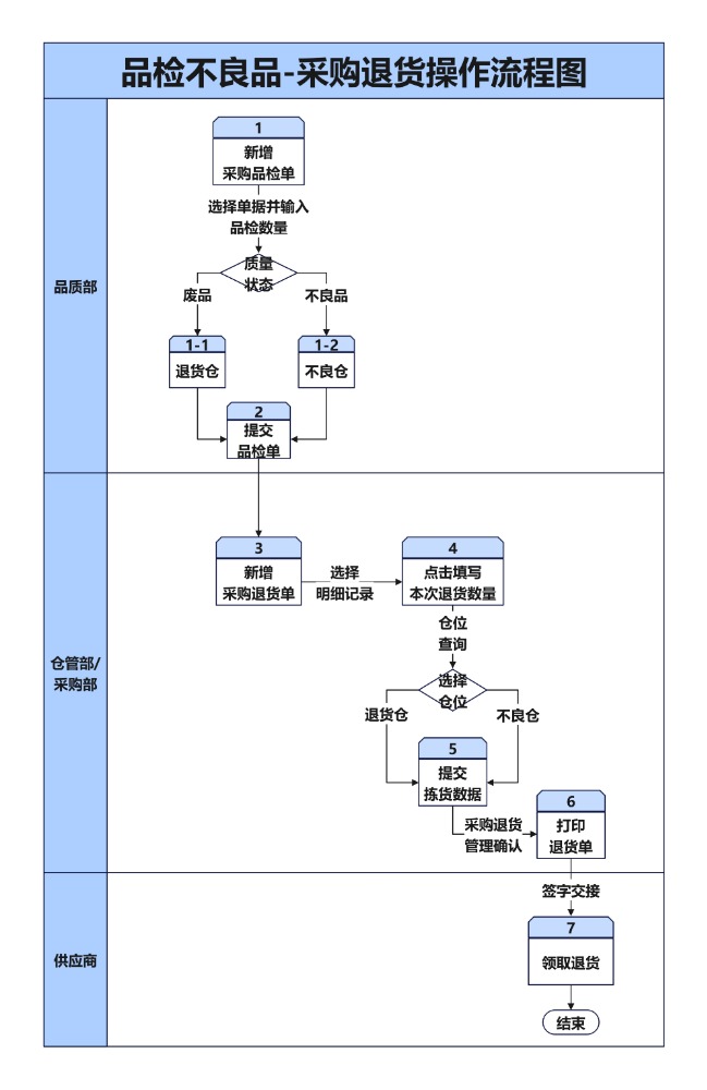 点晴模切ERP来料品检不良品操作以及退货操作流程