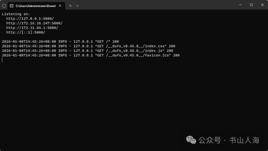 推荐了一款特别小众小巧并且功能强大的软件Dufs,下面我们一起来看一下这款软件具体使用吧! 软件介绍该软件托管在github上,是一款开源的工具,地址如下: Dufs的Github主页:https://github.com/sigoden/dufsDufs下载页面 :https://github.com/sigoden/dufs/releases 有博客专门为这个软件写了一篇介绍的文章,提到了“Dufs一款非常小巧且功能强大的文件服务器,你可以用它搭建文件服务器,它可以用于静态文件服务、文件上传、搜索、访问控制以及WebDAV等功能。” 感兴趣的朋友们可以看一下:https://www.iewb.net/content/html/78.html 由于访问该软件的github下载地址常常会因为网络问题而访问失败,故作者将其Windows版本的下载后存放于网盘,以方便大家下载。其他版本例如MacOS以及Liunx版本的可以到git上下载。 github下载地址:https://github.com/sigoden/dufs/releases 蓝奏云盘下载地址: 64位版本https://datastrong.lanzoue.com/iZjw43fl1uab 密码:e7zq 32位版本https://datastrong.lanzoue.com/iNOZR3fl1ubc 密码:b7xj 从git上下载的对应的是: 1. 点击下载好的软件就可以了,不需要安装。 打开后就有对应访问的地址,可以复制到浏览器打开。 这里要注意,在哪里打开的文件,默认分享的就是当前文件夹。 2. 软件可以移动到需要分享的文件夹下打开。如果需要添加其他权限可以将该软件放在系统环境变量的目录下,添加一个系统变量后直接使用命令行工具进行操作。 或者在软件目录下打开Windows命令行工具,输入.\dufs-32.exe -A 即可,具体使用方法在后续。 目前该软件支持的操作有: -A(--allow-all):允许所有操作 --allow-upload:允许上传 --allow-delete:允许删除 --allow-search:允许搜索 --allow-symlink:允许链接 --enable-cors:允许跨域 --render-index:允许渲染index.html,如果没有index.html返回404 --render-try-index:允许渲染index.html,如果没有index.html则展示文件夹内容 --render-spa:渲染单页应用 --tls-cert:https证书cert路径 --tls-key:https证书key路径 1. 将该软件移动或者复制到需要分享的文件夹下。 2. 双击打开软件,默认弹出了Windows的命令行的黑色窗口,注意:在分享的过程中不能关闭这个窗口,否则将无法访问。 第一个和最后一个地址都是本机浏览器访问的地址。 第二个地址是同一个局域网内其他主机浏览器访问的地址,也就是可以分享他人的地址。 3. 在需要访问该服务器的主机上打开浏览器,输入软件运行后的命令行窗口的第二个局域网的地址即可访问。 若需要给文件服务器添加其他权限,例如上传等,可以在命令行窗口进行操作。 1. 将下载的dufs复制到需要分享的文件地址下,在当前文件路径下【单击鼠标右键】,点击【在终端中打开】 2. 在打开的终端中输入以下命令。 3. 该命令意思是允许所有操作,在其他主机浏览器中打开如下。 可以发现确实多了很多功能,例如可以点击下载,这个下载是指将整个文件夹打包成zip格式一次性全部下载下来。 可以点击上传按钮,打开了选择窗口,选择任意文件上传到服务器。 除了基本的上传和下载之外,还有新建文件夹,新建文件以及搜索文件。其中新建文件提供了文件编辑界面,可以输入和编辑以及保存文件内容。 文件后面的三个按钮分别是下载,移动以及删除文件。 阅读原文:原文链接 该文章在 2026/3/9 11:02:56 编辑过 |