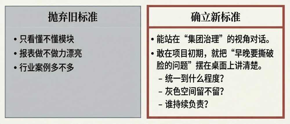• 谁有权发起“体系级调整”?是 IT?是财务?是业务线?还是必须集团层拍板?