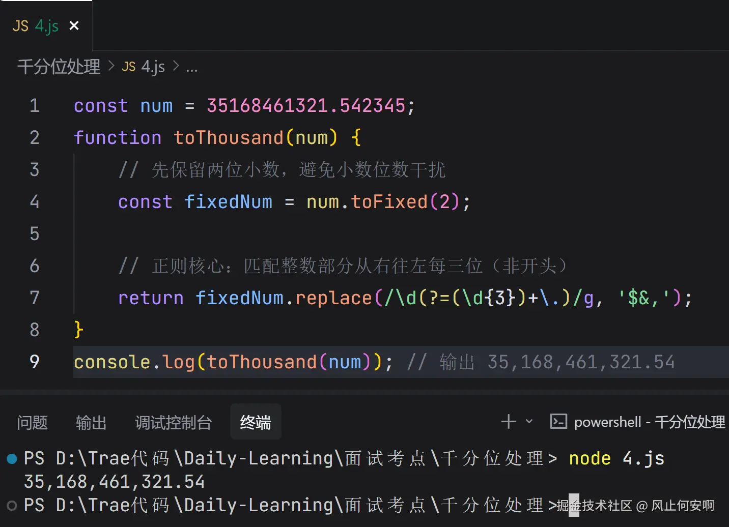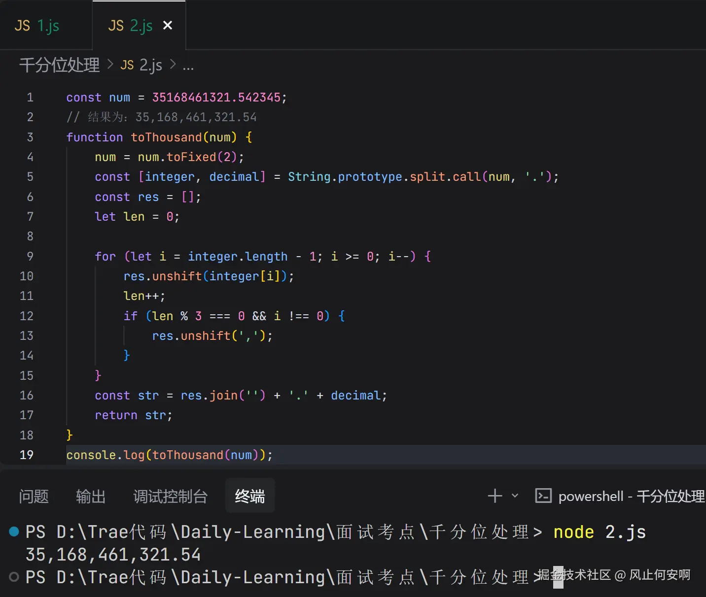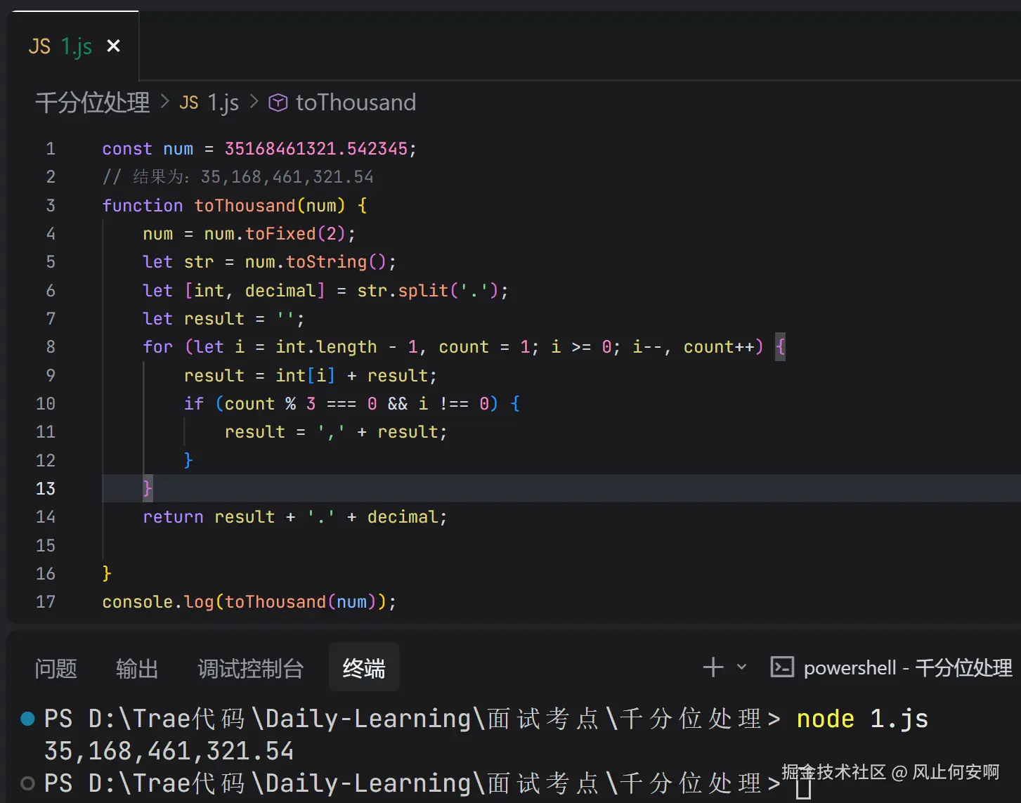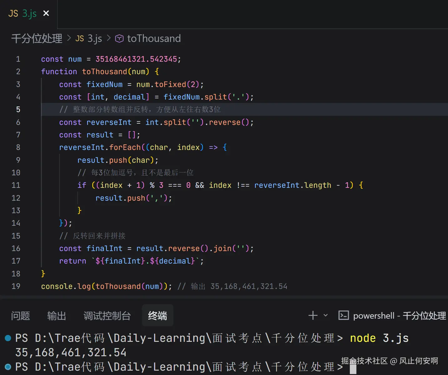 面试的话,手撕代码肯定是少不了的。最近看到一个非常有意思的题目:如何实现千分位处理?比如你💳里面的余额是 35168461321.542345,怎么把它变成 35,168,461,321.54