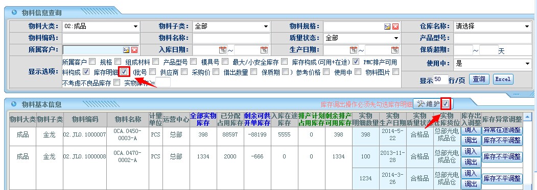 一. 全部实物库存调整,必须用调入与调出方法调整,如图所示: