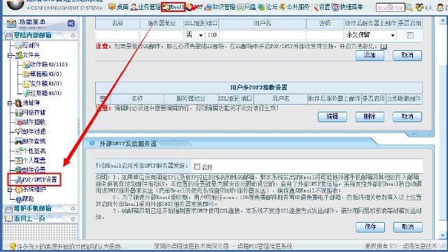设置完成后点击“Email”—“POP/SMTP设置”;如下图所示: