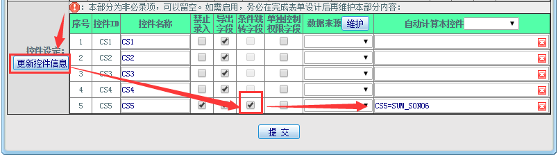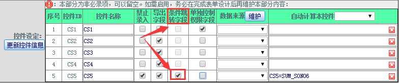 1.4进行控件“禁止录入”“导出字段”“条件跳转”“单独控制权限字段”设置;如下图: