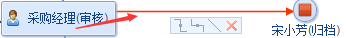 按住左键拖动到下一结点审核图标,待图标周边线框变红色,放开鼠标即可: