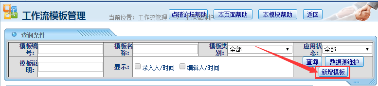 操作步骤:工作流管理——模板管理——新增模板;如下图: