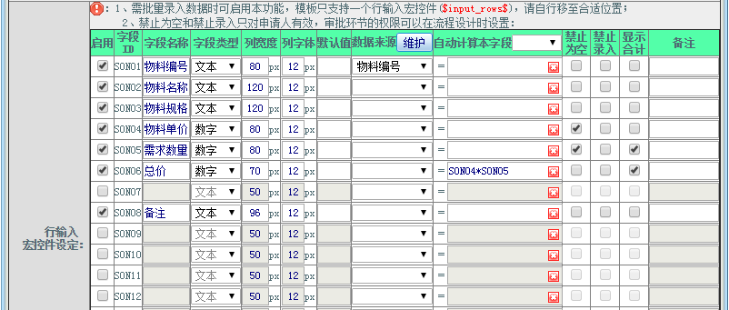 操作步骤:点击勾选“启用行输入宏控件”如下图所示: