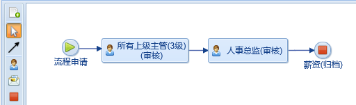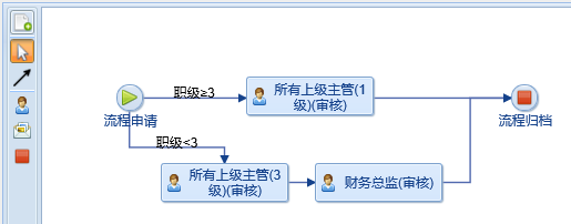 所有上级主管(3级):一直往上查,到指定的职级(3级)才结束,审核人:班长-》主任-》经理。如果经理没人,就会继续往上查总监,总监没人就会查总经理。