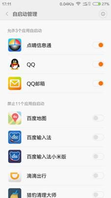 5.1、打开设置——点击权限管理 5.2、进入页面后点击“自动启动管理”5.3、进入页面,选择“点晴信息通”,设置启动,如下图: QQ图片20180123102820.png)