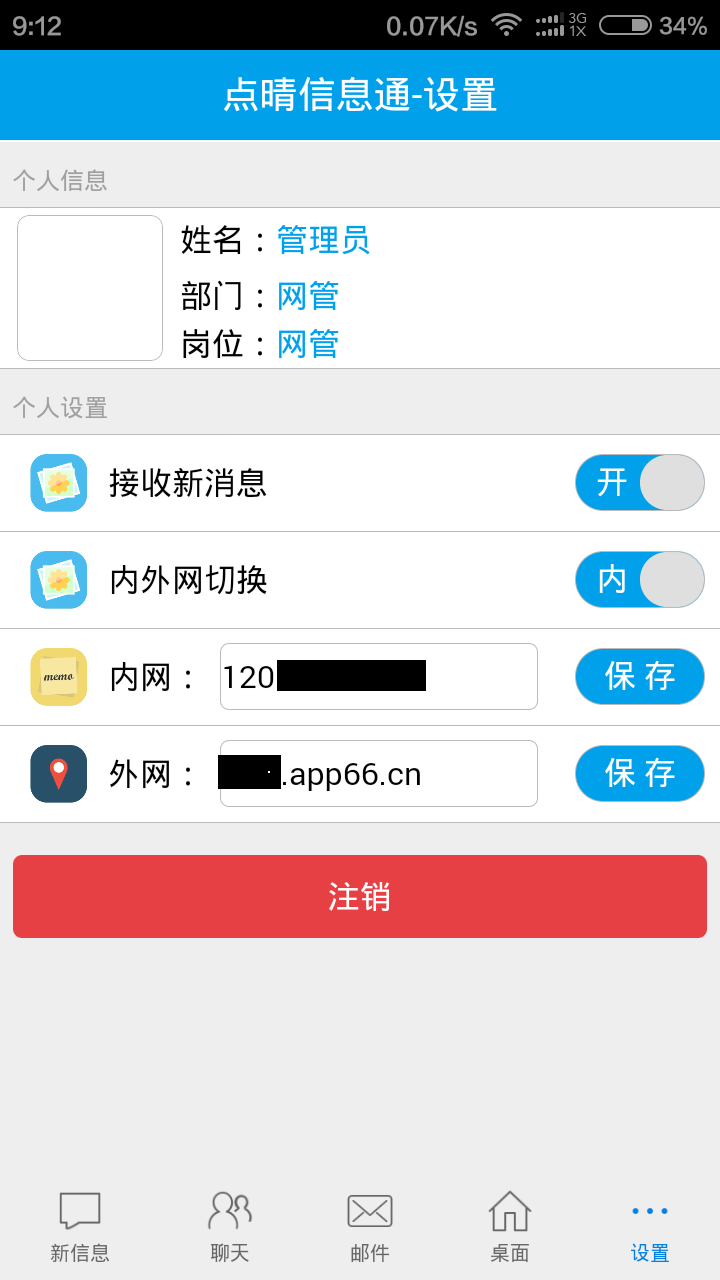 3.1.开启点晴信息通应用内部的通知功能,“设置 -> 开启新消息提醒”;