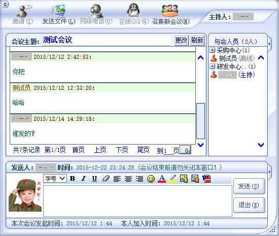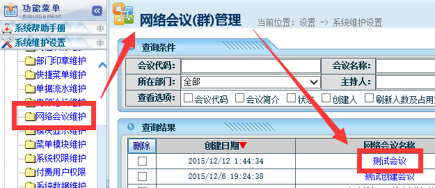 网络群会议因为是针对某项使用单位内工作事务进行多人间的会话,所以允许网管查看群会议,查看位置: