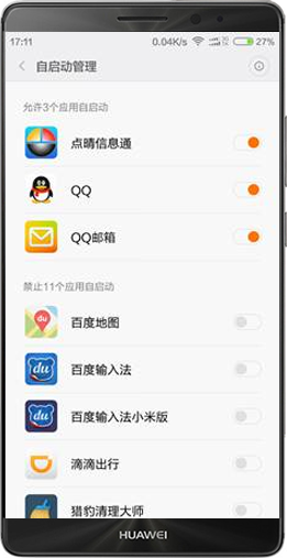 5.1、打开设置——点击权限管理 5.2、进入页面后点击“自动启动管理”5.3、进入页面,选择“点晴信息通”,设置启动,如下图: