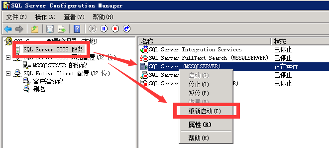 进入点晴OA服务器,打开:开始-》所有程序-》Microsoft SQL Server 2005/2008-》SQL Server Management Studio,身份验证选择“Windows 身份验证”,然后点击“连接”: ![]() 进入后检查如下设置: 1、检查是否开“ SQL Server 和 Windows 身份验证模式” ![]() ![]() 一定要选择“SQL Server 和 Windows 身份验证模式”,切勿选择为“Windows 身份验证模式” 2、检查管理员账号sa是否连接数据库并开启了允许远程登录: ![]() ![]() 不要勾选“强制实施密码策略”,否则后续出现错误,很难查原因,管理员可将这个密码设置复杂些 ![]() 这两项必须分别设置为:授予和启用 3、打开OA服务器“开始-》所有程序-》Microsoft SQL Server 2005/2008-》配置工具-》SQL Server Configuration Manager(SQL Server配置管理器)”: ![]() 必须启用:Shared Memory、Named Pipes、TCP/IP这三项 ![]() 必须启用:Shared Memory、Named Pipes、TCP/IP这三项 4、然后重启SQL Server: ![]() 5、启动完毕之后,再试试sa能否正常登陆: ![]() 弹出以下界面: ![]() 然后点击“连接”,现在应该可以正常登陆SQL Server数据库了。如果不行的话,回头重新检查所有参数,必须通过才行。 相关教程: 该文章在 2016/3/7 22:11:25 编辑过 |