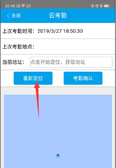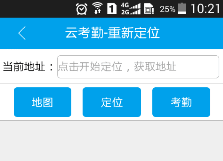 点击“定位”可以获取当前位置信息,点击“地图”可以加载地图查看当前的地图信息。点击“考勤”将保存考勤信息。