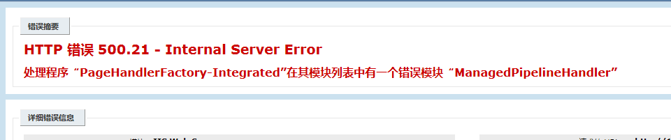 :点晴OA上传jpg、png和gif格式logo或印章图片后无法显示,提示:http错误403.1Forbidden您尝试从某个目录运行CGI、ISAPI或其他可执行程序,但该目录不允许运行可执行文件,如何解决?![]() ![]() ![]() 如果确定指定的目录下面的确有该图片文件,那么就应该是IIS点晴OA的应用程序池设置为经典模式造成的,将IIS上点晴OA的应用程序程序池改为集成模式即可: ![]() 注意,如果是先安装的IIS,然后才将.net framework框架升级到4.0,可能会报以下错误: ![]() 按照以下教程设置IIS即可恢复正常: