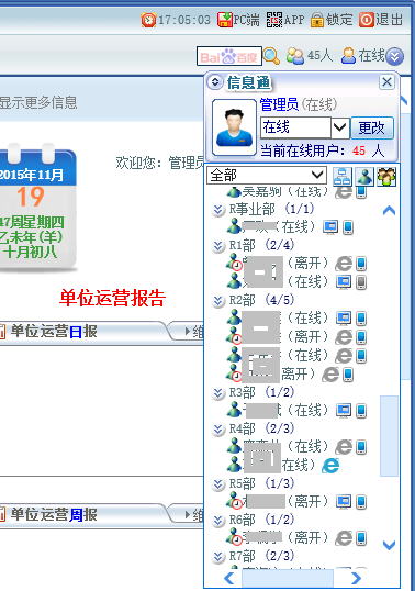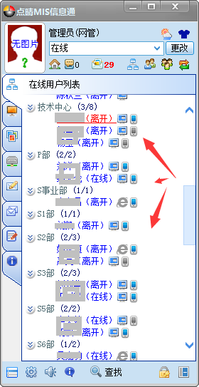 [点晴IM即时通讯系统]点晴OA中在线用户列表显示信息通PC客户端与手机APP端即时信息通讯在线状态提醒和人数似乎不准确,是如何判断的,用户可以自己修改吗?