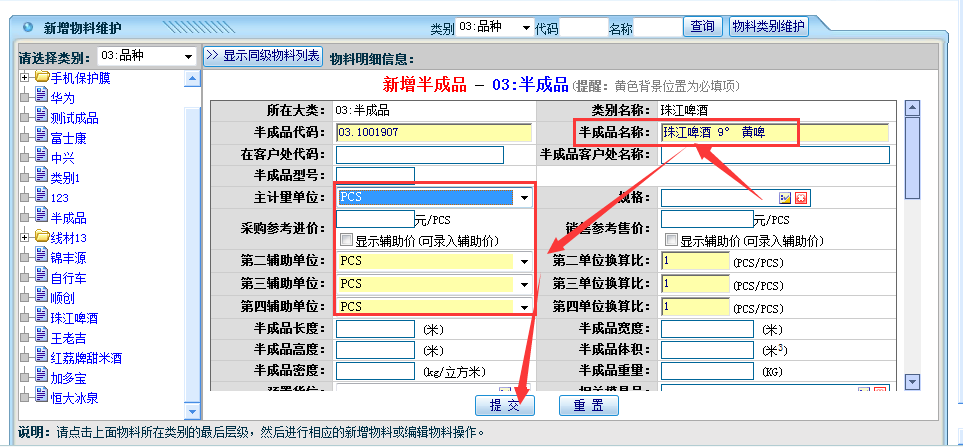 操作:产品管理——产品添加——选择品种——录入对应品种的名称以及单位——点击“提交”