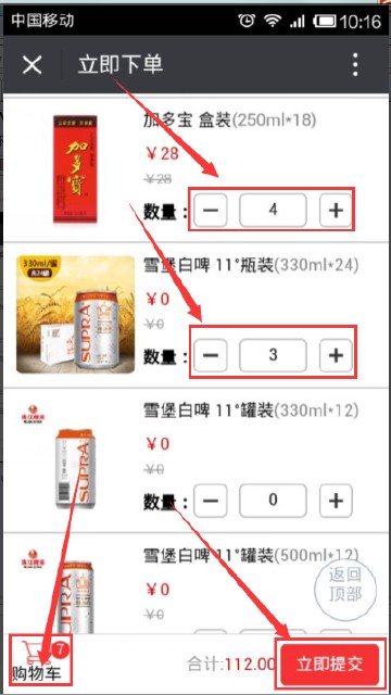 选择对应的商品与数量点击“立即提交”按钮;点击后,进入如下下图所示界面:
