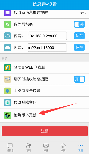 3.1.开启点晴信息通应用内部的通知功能,“设置 -> 开启新消息提醒”;