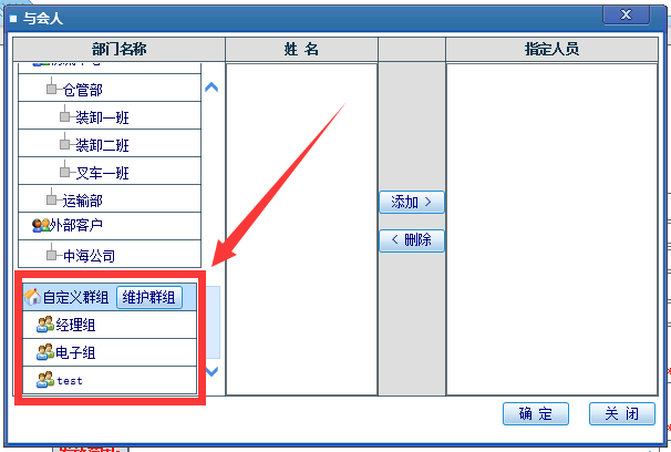 可以设置自定义群组,发布会议通知或公文通知时,直接点击群组,即可简单的将需要的人员加入。