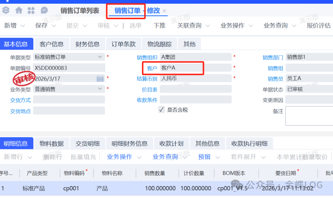 Q问题描述在日常销售业务中,销售订单的客户信息有时会选错需要修改。那么,在系统中应该如何操作呢?是直接改,还是需要走流程?本文将根据订单是否已有下游单据,分场景为您详细解答。学完本篇文章,您将学会:①销售订单无下游客户修改方式②销售订单有下游客户修改方式​ A问题解答一、销售订单无下游如果销售订单在修改客户时,还没有...