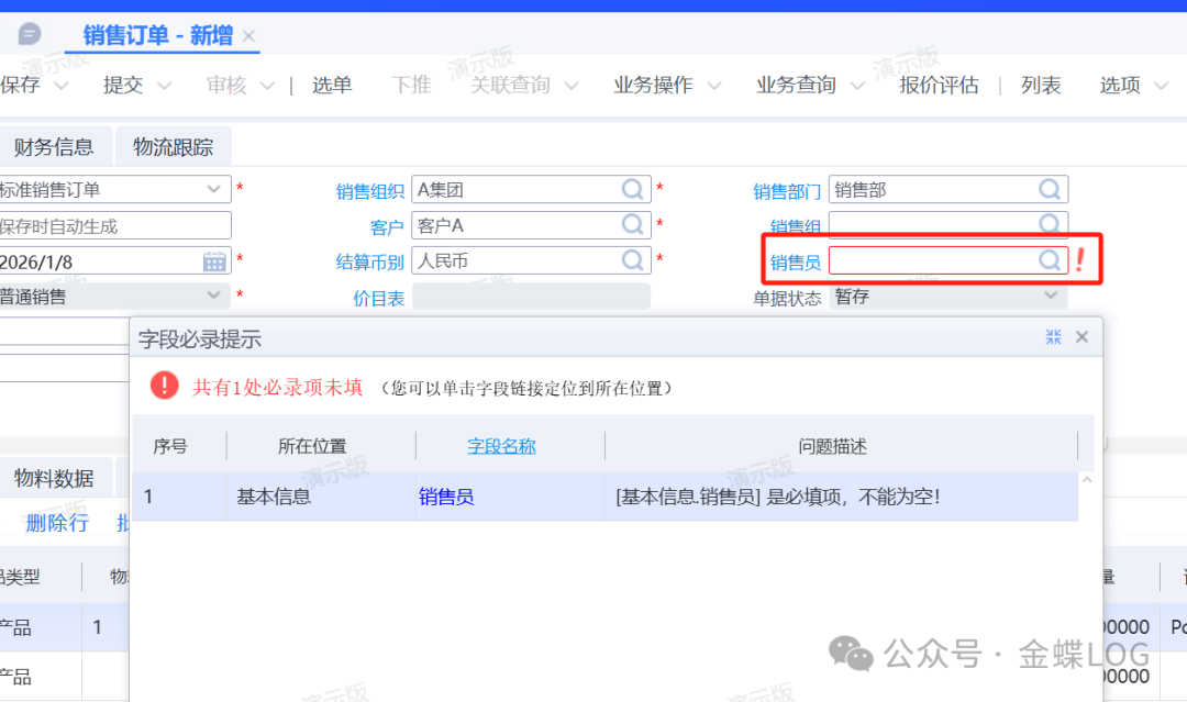 ERP新增物料必填项设置