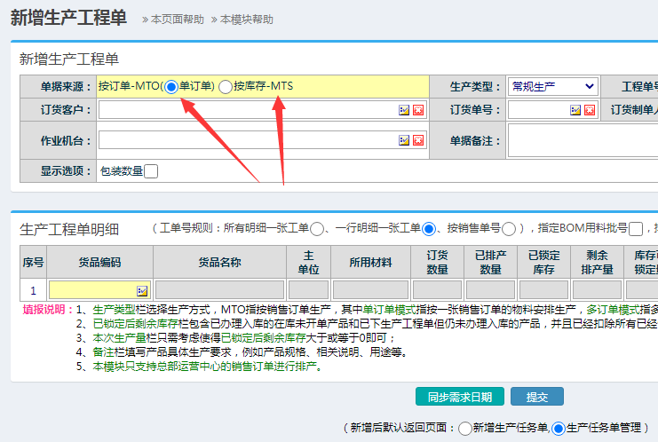 请问点晴ERP系统中没有销售订单如何做生产工单排产?新增生产工程单时,注意单据来源有:按“订单-MTO”、“按库存-MTS”两种方式。一般是“按订单-MTO”的方式下达生产工单,也就是要有销售订单才能安排生产工单。如果没有销售订单,那么就应该勾选后面那个“按库存-MTS”的方式直接下达生产工单即可,“按库存-MTS”方...