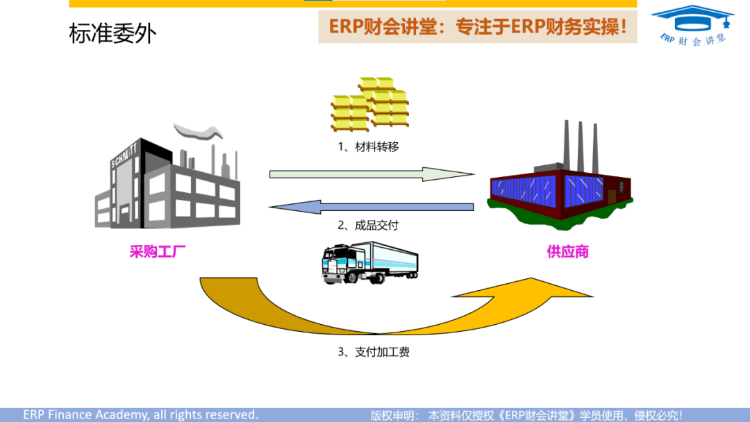 委外加工,在制造业是很常见的一种业务。当企业的生产能力不足,或者缺乏某些技术,需委托第三方进行代加工。委外加工也分很多形式,可以是提供原材料给第三方代加工,也可以是将生产过程中的某道工序进行委外。这一节给大家演示SAP标准的委外加工流程,即给委外商提供原材料,加工完成后收回成品,并支付加工费。此业务场景,通过特殊的采购...